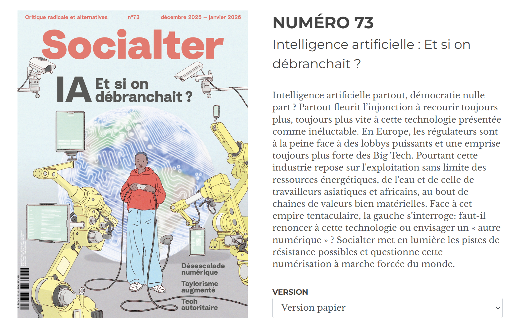 => Sur la thématique de l'IA en particulier, le Socialter N°73 se révèle très intéressant: